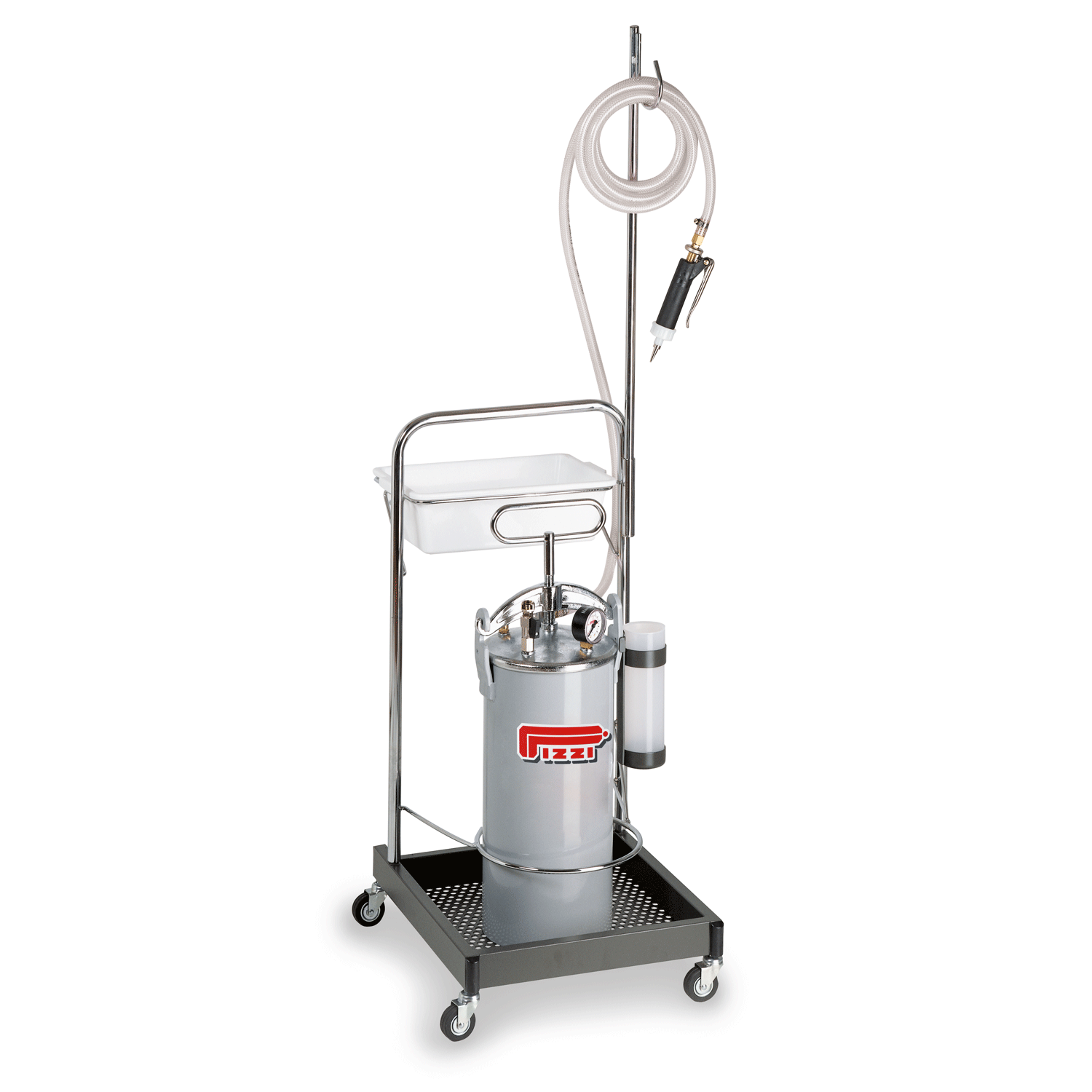 Constructed from heavy-duty iron with a full plastic inner lining and a chromed brass lid, the Pizzi 9001 is built for long-lasting durability and chemical resistance. Its 8 kg capacity makes it ideal for both small workshops and large-scale production, and it comes standard with one adjustable-flow glue gun featuring a universal pointed nozzle for precise application.